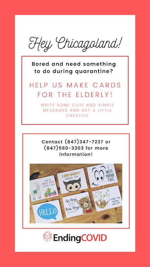 UPDATE (5/28/20): Since we began our efforts on May 25th, we have collected over X cards to distribute to nursing homes and senior citizen centers in the Chicagoland area. Thank you to everyone who has contributed thus far; we could not have done this without you!