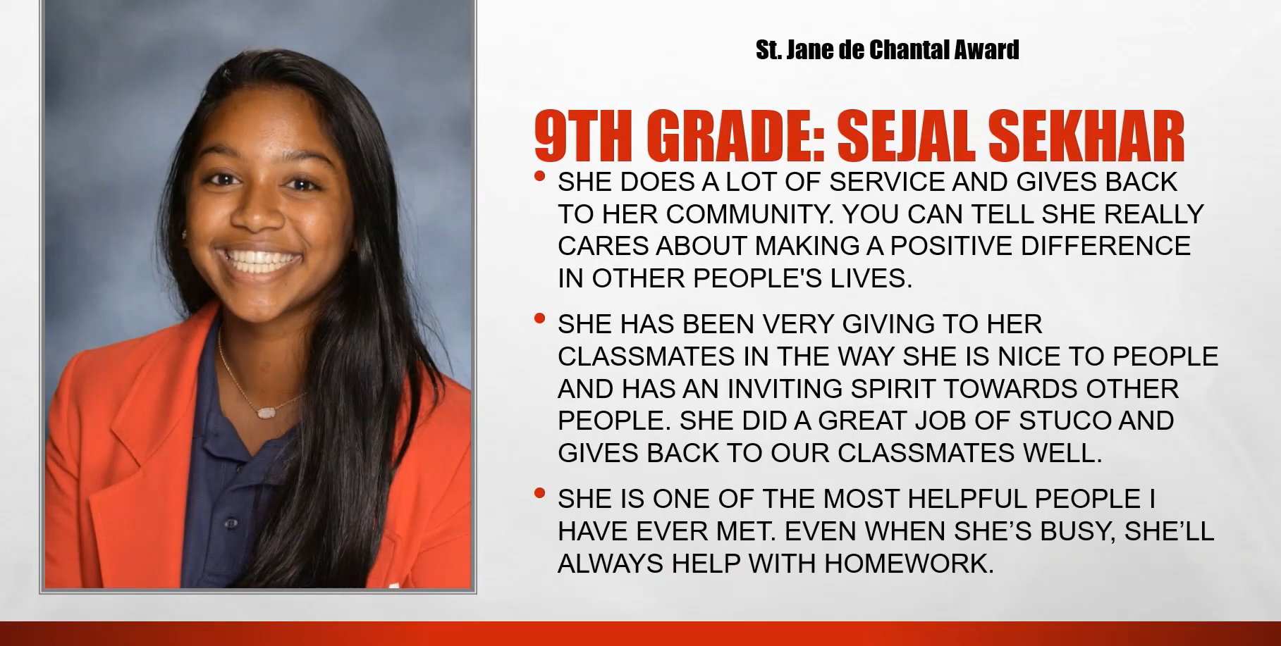 Associate Director Sejal Sekhar was selected as the recipient of the St. Jane de Chantal Award by her high school, Visitation Academy. The award is annually given to a student who plays an active role in their community and demonstrates exemplary service to others. Some of her classmates describe her as “the most helpful person they have ever met” and say that “she really cares about making a positive difference in other people’s lives.”